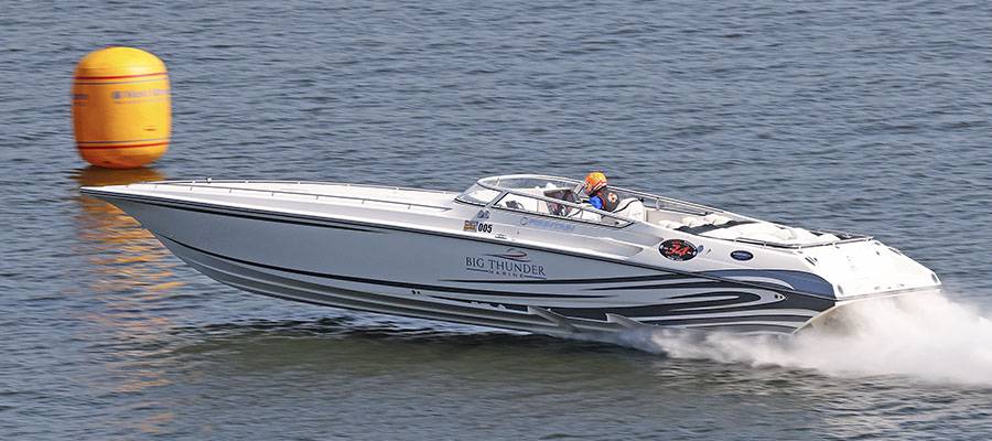 Ben Robertson of BAR Marine Group in South Carolina ran 152 mph in a 42-foot Fountain Powerboats V-bottom powered by twin Mercury Racing 1550/1350 engines.
