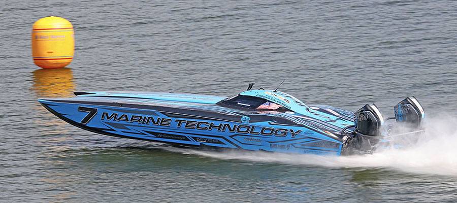 A couple of other notable outboard-powered catamaran runs included Rusty Williams of Performance Boat Center reaching 124 mph in a Wright Performance 360 and Tony Chiaramonte of DCB Performance Boats getting to 118 mph in the Kris and Shelby Hansen’s M37R Widebody. Both boats were powered by twin Mercury Racing 450R engines.