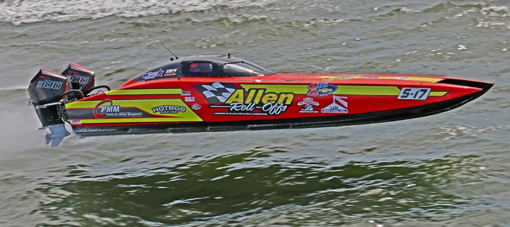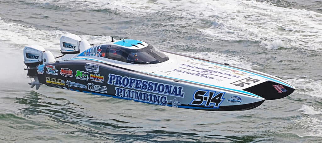 Attrition took a heavy toll in the race with GC Racing pulling off first with mechanical problems. Tomlinson said TS Motorsports broke motor mount bolts and one engine started overheating so he had to pull the boat to the inside of the course. Montlick Injury Attorneys had a strong outing with Carpitella nailing the setup and keeping the boat flying level en route to a convincing win.