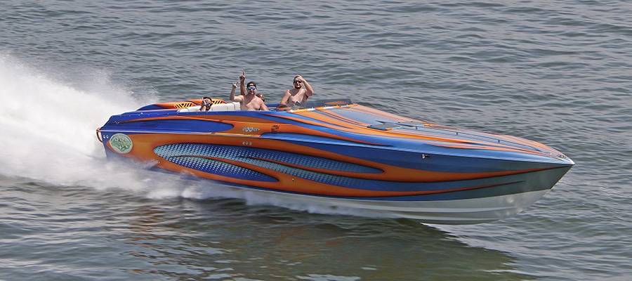Charter members of the original Kuttawa Cannonball Run organizer family, Jeff Hoefling and Audra Meyer were joined by friends for the run in Hoefling’s Outerlimits 39 GTX V-bottom. Photos by Pete Boden copyright Shoot 2 Thrill Pix.