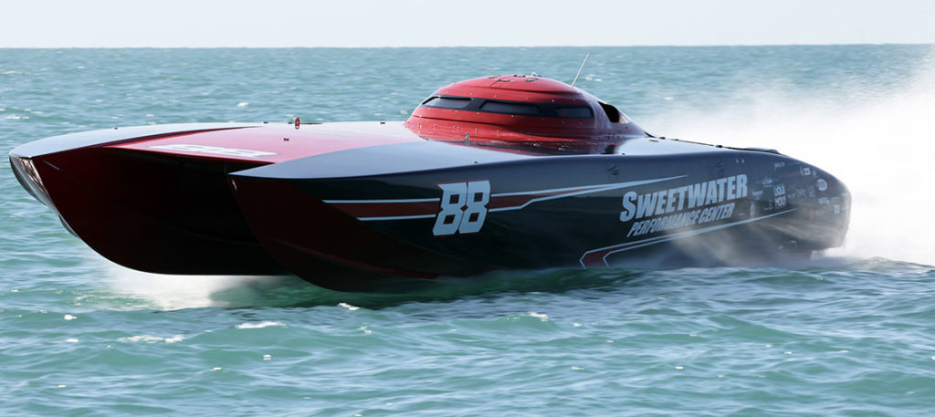 At present, only the SV Racing team’s Vinnie Diorio and Simon Prevost have the 860-hp engines in their raceboat. Their installation of those engines two seasons ago officially forced them out of the Super Cat ranks—at least by APBA rules for earning class points—for those seasons. Now, they can officially compete in the Super Cat ranks with those powerplants in their 39-foot Outerlimits catamaran.