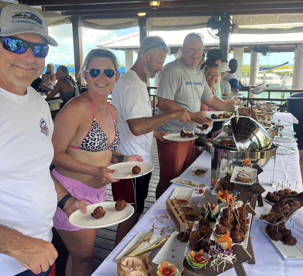 No one put more gumption into getting here than Mark Grieser of the St. Clair, Mich., area, and his family. They made the 200-plus-mile trip in a Sunsation 32 CCX center console. It is the smallest boat in what began as a 16-vessel fleet. Running their 32-footer, Grieser and his crew had to handle the same Atlantic Ocean crossing from Fort Lauderdale, Fla., to Bimini in 3- to 5-foot seas and from Bimini to Nassau in 5- to 7-seven foot seas that Chris Richards and the Angle of Attack Marine crew had to handle in their 42-foot Mystic Powerboats center console.