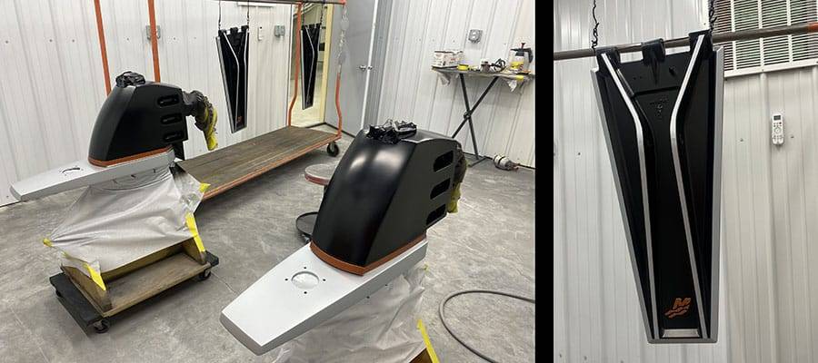 The team at Graphix 1 Paint has a pretty cool Fountain Powerboats 47 Lightning going at the moment, too. Not only is the sizable 47-foot V-bottom canvas receiving a full refresh, the drives and tabs also are getting the custom paint treatment.