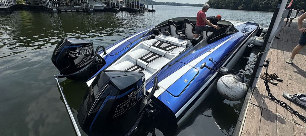 Blount said he plans to use the carbon-fiber 39-footer, which features a full Bluave Marine Audio sound system, Lumitech lighting, a 22-inch Garmin display and a paintjob from Graphix1 Paint, one more time at Lake the Ozarks in the fall before sending it to Florida where he plans to do some Florida Powerboat Club events and experience boating in a completely opposite part of the country.