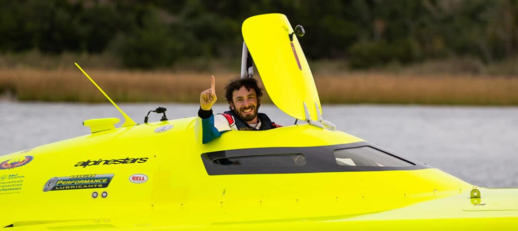 Brit Lilly is following in his father’s footsteps—while making some large shoe prints of his own. Photos courtesy/copyright Powerboat P1, Gary Stray, Pete Boden/Shoot 2 Thrill Pix, Brad DiMaggio/Scrapyard Media and Tim Sharkey/Sharkey Images