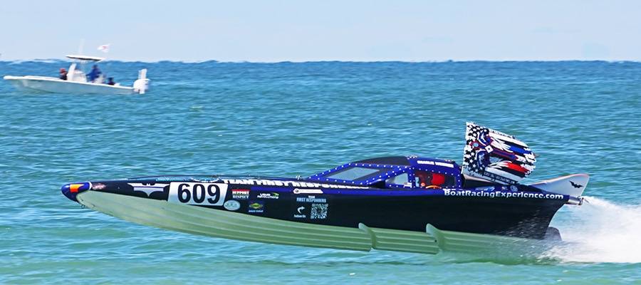 Ballough said the conditions in the Gulf of Mexico off Englewood Beach were perfect for the Super Stock boats. “It was a fun race because the water was a little challenging,” he explained. “It was so much better than it being flat or so rough that everyone was going to break their boat in half.”