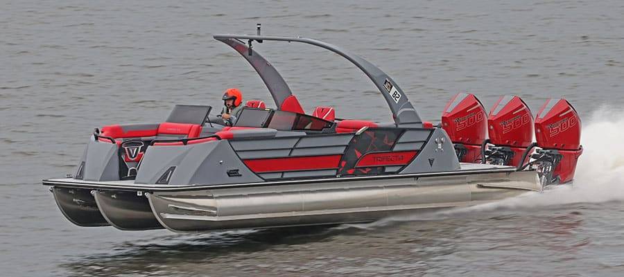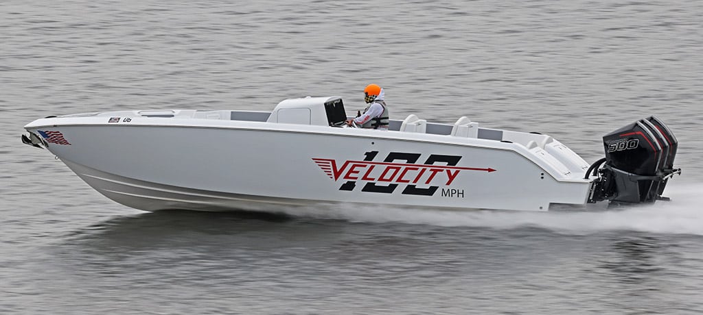 A couple of boats from Velocity Powerboats recorded notable top speeds as well. Brad Christopher hit 89 mph in his brand new 22-foot Velocity powered by a single Mercury Racing 300R engine and Velocity owner Scott McCormick reached 108 mph in the company’s first 330 center console—hull No. 1 of the new model, which was powered by triple Mercury Racing 500R engines.