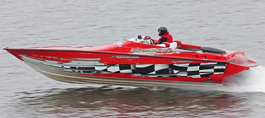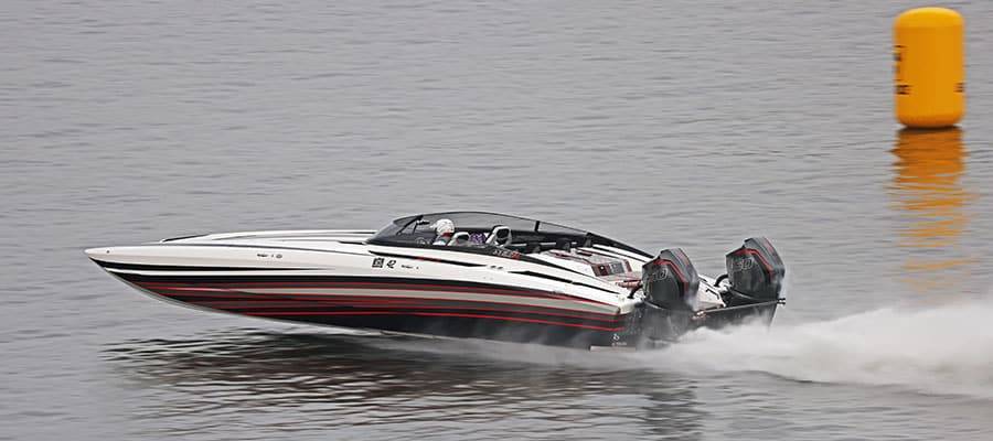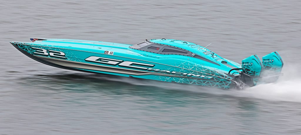 With a top speed of 126 mph, the current leader of the 450R Factory Stock offshore raceboats competing in the event is the 39-foot MTI GC Racing, which is driven by owner Willy Cabeza with throttleman Grant Bruggemann. The duo plan to compete in tomorrow’s Shootout kilo runs in an attempt to improve the American Power Boat Association record the MTI set last year.