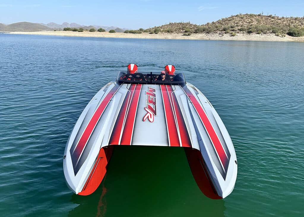 Fans of the DCB Performance Marine custom catamaran brand will have plenty to drool over next week during the concurrent Lake of the Ozarks Shootout and Super Cat Fest events in Central Missouri. Starting Friday, August 23, the Phoenix-based custom builder will have a dozen cats—including the latest M37R built for professional trophy truck racer Bryce Menzies—in the water at the Camden on the Lake Resort, the host venue for Super Cat Fest.