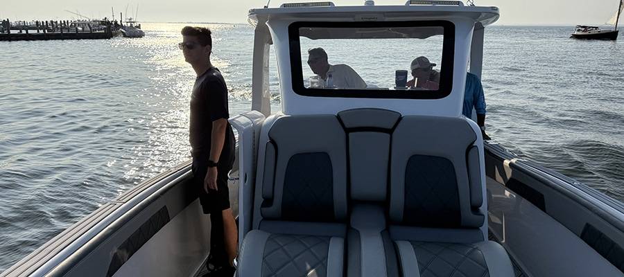 “And when the water gets rough, the 369 handles it better than any boat in its class,” he continued. “The 369 is our smallest model, but it has the Deep Impact ride. Our boats are built for open water. Their hulls are designed for running offshore. We are not trying to build them light.”
