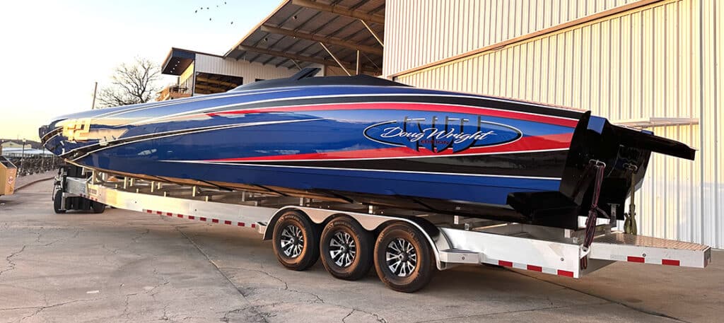 It’s been a busy 2024 so far for Justin Wagner, the owner of Waves and Wheels and Bluave Marine Audio in Osage Beach, Mo., and this week doesn’t look any different. Following his visit a week and half ago to Doug Wright Powerboats in Melbourne, Fla., to meet with the leadership team and check in on a few builds Waves and Wheels has on order—including the dealership’s third catamaran, a 39-footer that was delivered to Missouri early last week for all of its finishing details—Wagner made sure the company’s second Doug Wright was on target for its March delivery after it came out of the paint booth last week.