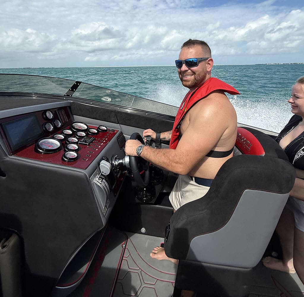 “That was my first time really driving in the ocean—and there were some pretty big waves,” he added. “At one point we were running next to an older 43 Black Thunder, and you know that thing is like a small house on the water. And still it was coming out of the water and the bow was getting wet anytime it hit a big wave. We can get some big water in the Chesapeake Bay, particularly on days where you get the wind blowing a certain way. And, because the bay has so many different rivers that flow into it, when it gets windy, it can get pretty snotty and hard to predict. That’s one thing I liked when I was out in the ocean—after a couple minutes, we’d start to get a rhythm of what was happening and it became easy to feel what was coming.”