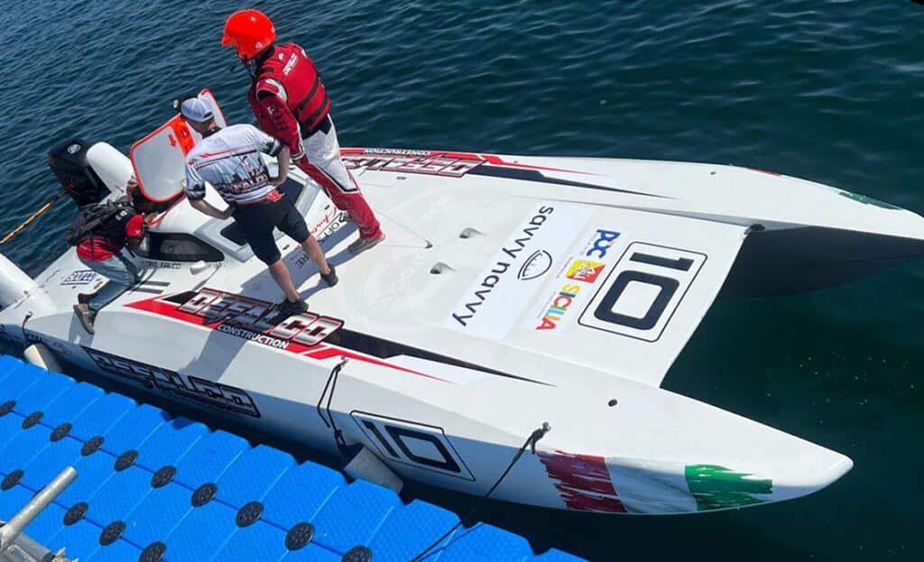 When veteran offshore racer Billy Moore, who throttles for the Super Cat Graydel and Class 1 Defalco teams, reached out last Wednesday from the XCAT Palermo Grand Prix in Southern Italy, he wasn’t sure when he and Defalco team owner/driver Mike Falco would get their hands on the 222 Offshore team’s raceboat. The United States-based teammates were hoping to run the 32-foot catamaran together during Thursday’s practice and testing session.