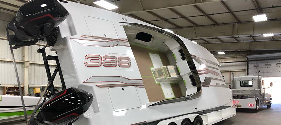 “No one has ever seen an outboard-powered 388—this is the first one,” said Cutsuries. “Pete loves outboards and he’s really excited about it. We think it’s going to be great.”