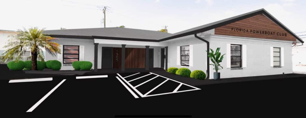Jones is delighted with the new Florida Powerboat Club facility (shown in its final version in the rendering above), which is a just a mile from his home.