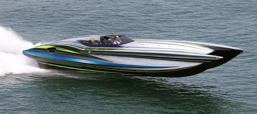 The 2019 Orange Beach Powerboat Week attracted Louisiana’s Nate Michel in his 40-foot MTI Cloud IX catamaran. Photo courtesy/copyright of the Florida Powerboat Club.