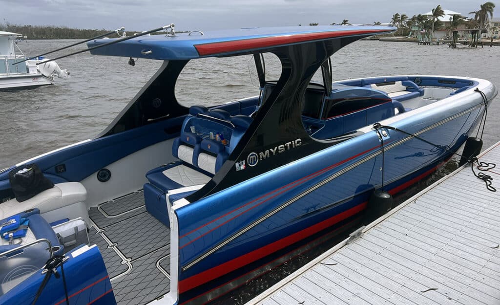Club founder Bob Barnhart’s 42-foot Mystic Powerboats center console was a welcome sight at the docks.