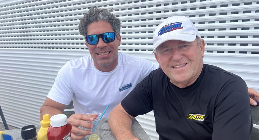 A fine pair of leaders, former Fort Myers Offshore president Eric Belise (left) and club founder Bob Barnhart enjoyed a moment together.