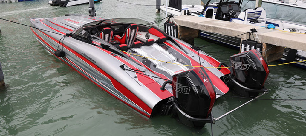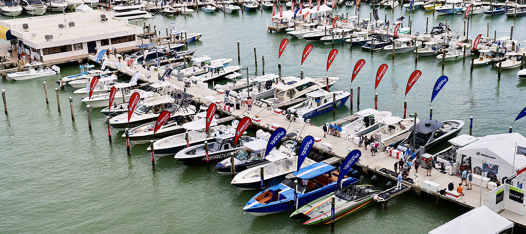 Since the boat show moved to Virginia Key in 2016—where it stayed through last year—Performance Boat Center has been good for an extensive in-water display of Wright Performance catamarans and Sunsation center consoles. Plus, the Osage Beach, Mo.-based dealership carries the Cigarette and MTI lines so Performance Boat Center-represented brands were hard to miss.