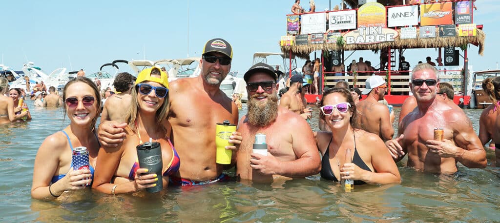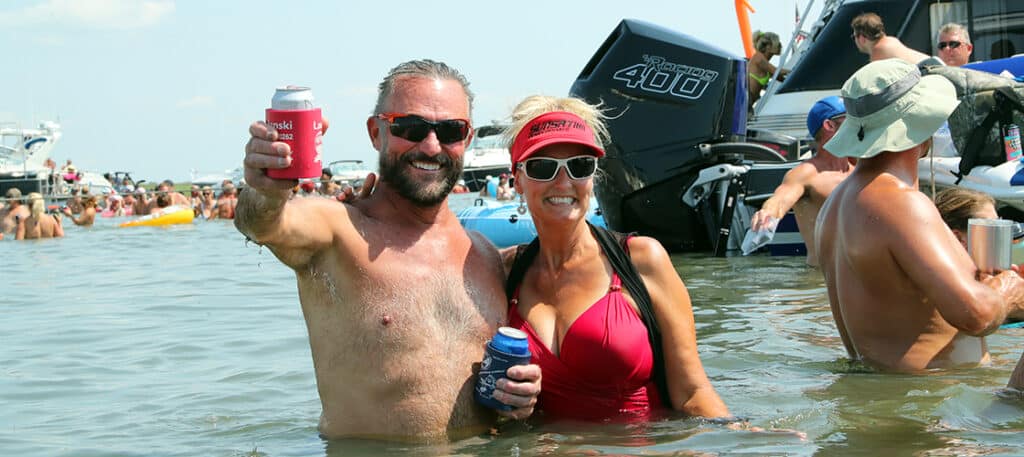• Sunsation center console owner Terry Martin and his wife, Melanie, of Kuttawa Cannonball Run organizing-fame left their own ride back home in Kentucky. They joined their friends Chad and Rita Combs of Tennessee, who brought their Sunsation 34 CCX for the Sun Run weekend. Said Martin, “The raft-off was epic. And as usual, Chad’s Sunsation was the center of attention with the dance party.”
