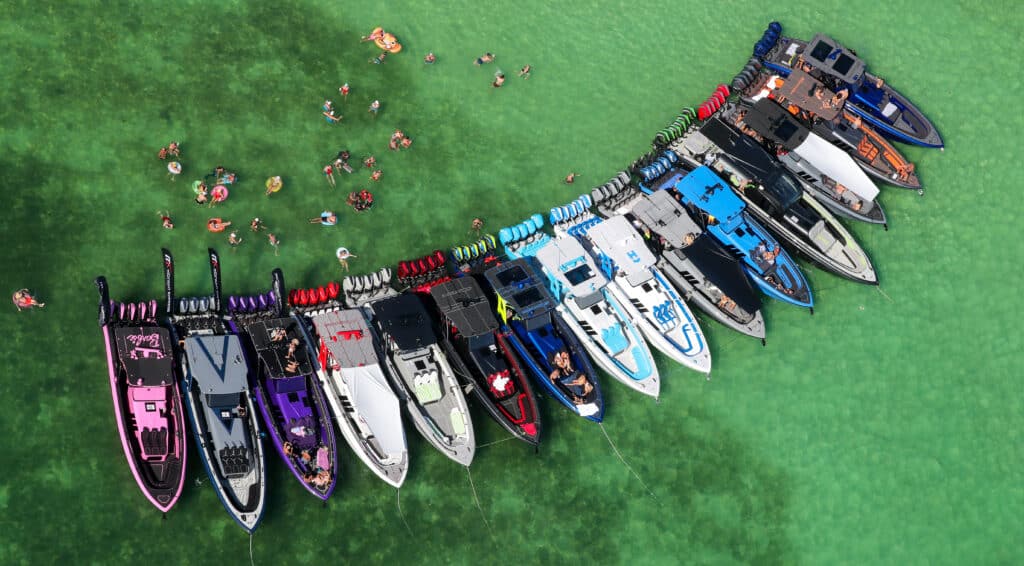 An organic convergence of go-fast powerboats happened last weekend in Woman Key. Photos by Jeff Helmkamp copyright Helmkamp Photos.