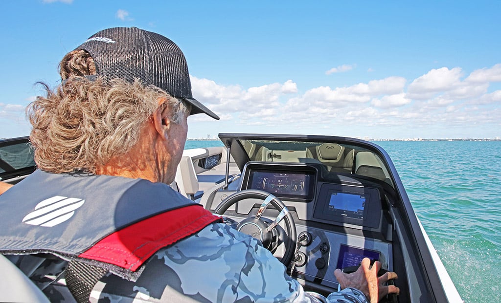 John Tomlinson enjoyed driving the twin 500R-powered Avalon tri-toon.