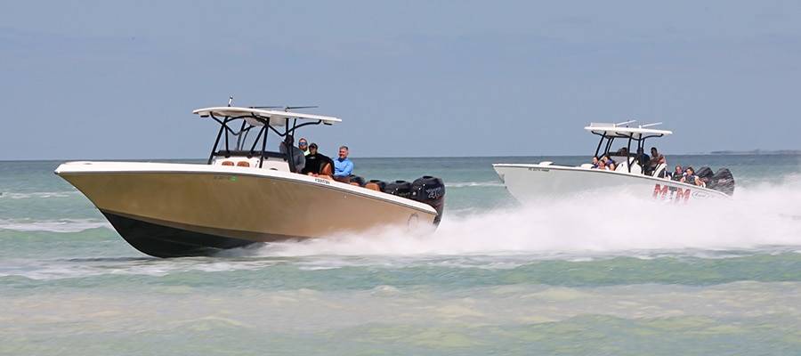 Another gentlemen Miles met this weekend came from South Carolina. But instead of bringing his 48-foot MTI catamaran to the run, he brought “a skiff with a big Yamaha outboard hanging off the back of it, just straight Key Island Runners style,” Miles recalled.