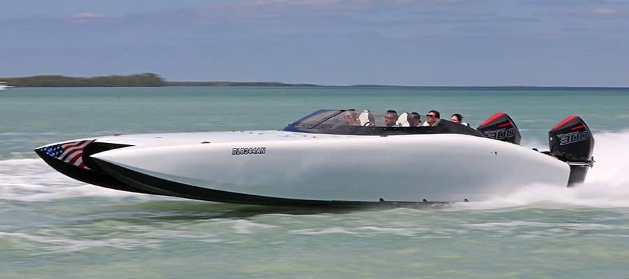 “It took everything, every ounce of trimming and finding a sweet spot to get by this little cat with a console—it couldn’t have been more than 23 feet long—with a single 450R outboard,” he said, then cackled again. “They had to be hanging out there at a buck-nine for 10 minutes straight.”