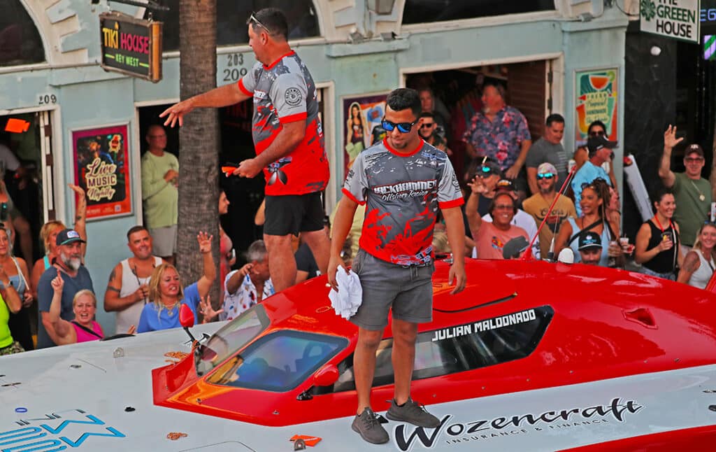 Thanks to leg injuries sustained in a golf-cart crash, Julian Maldonado’s 2024 Key West Worlds experience most likely will be limited to the Sunday raceboat parade and cheering on his teammates. Photo by Pete Boden copyright Shoot 2 Thrill Pix.