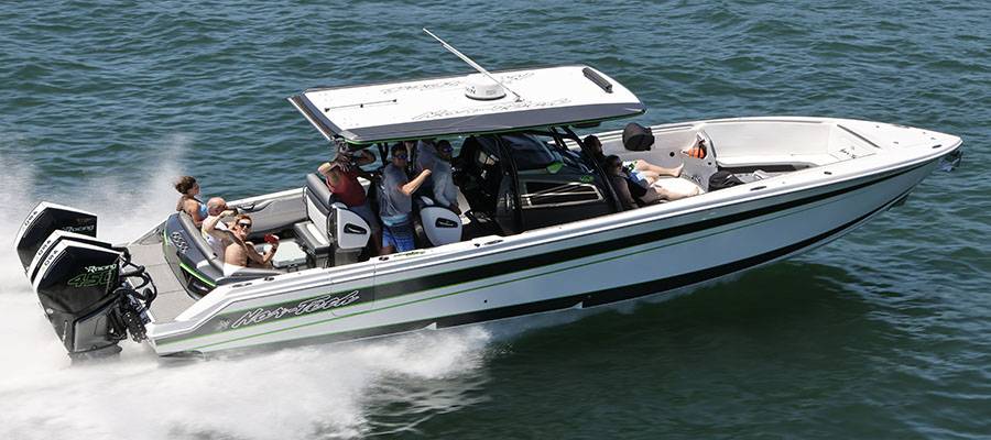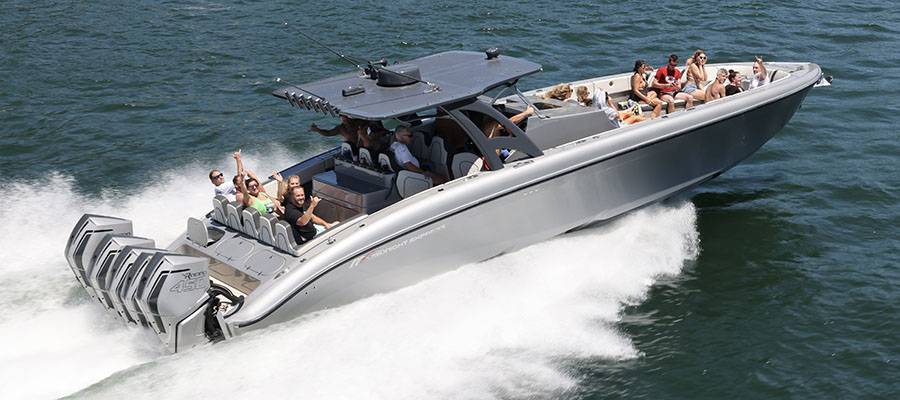 “The weather was beautiful and we had a blast as usual,” said Tennessee performance boater Chad Collier, who enjoyed the run with his wife, Heather, in their MTI-V 42 luxury performance center console. “Justin (Lucas) always is so organized and has it all mapped out for the entire weekend. Lake Cumberland is one of, if not the cleanest and most beautiful lakes in the Southeast!