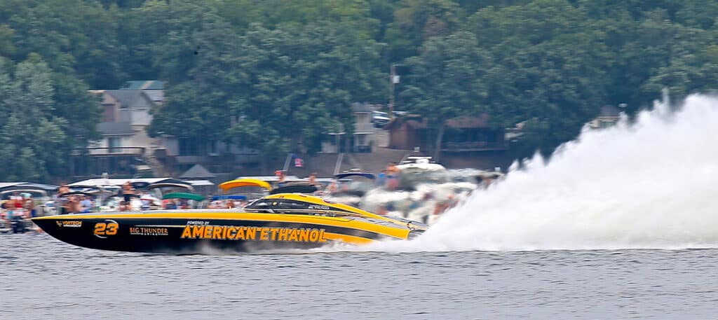 If the American Ethanol Mystic owned by Don Onken returns in an attempt to win its 11th straight overall Top Gun title at the 2025 Lake of the Ozarks Shootout in Central Missouri, it will be on a new course. Photo by Pete Boden/Shoot 2 Thrill Pix