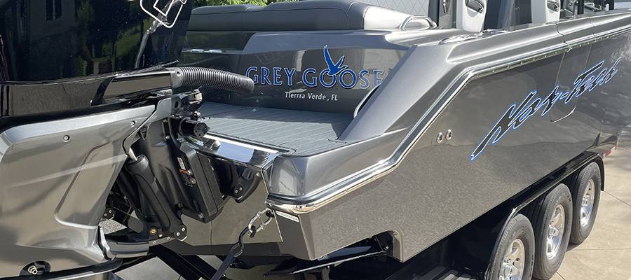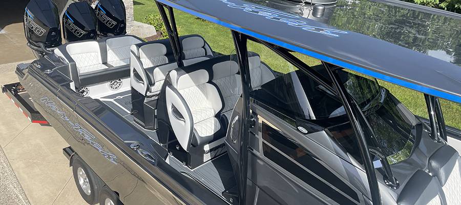 “We had seen it on a visit to Nor-Tech, but that was when the boat wasn’t all together,” he continued. “As soon as Mike showed up and we uncovered it, my wife was like, ‘I freaking love it.’ Mike said, ‘That’s always a good sign.’”