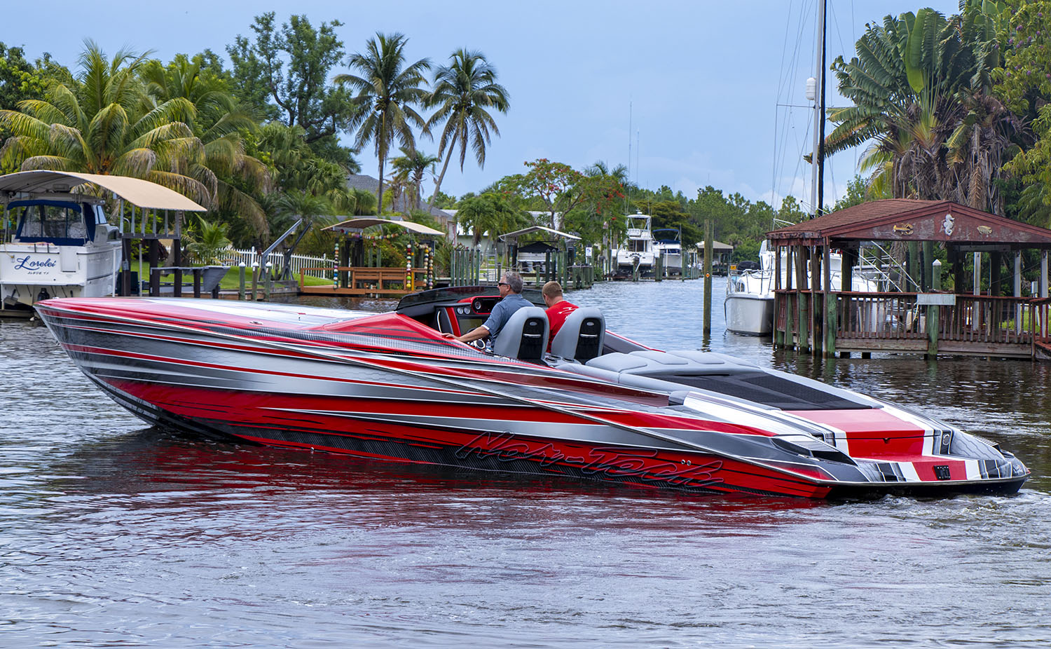 Since introducing its first 39-foot high-performance center console in 2009, Nor-Tech Hi-Performance Boats of Fort Myers, Fla., has successfully focused most of its energy on developing an entire line of center consoles from 34 to 56 feet. But company founders Trond Schou and Nils Johnsen never abandoned their high-performance V-bottom and catamaran roots, as witnessed by yesterday’s delivery of an immaculate 477 Super Vee to Ron Meyering of Holland, Mich.