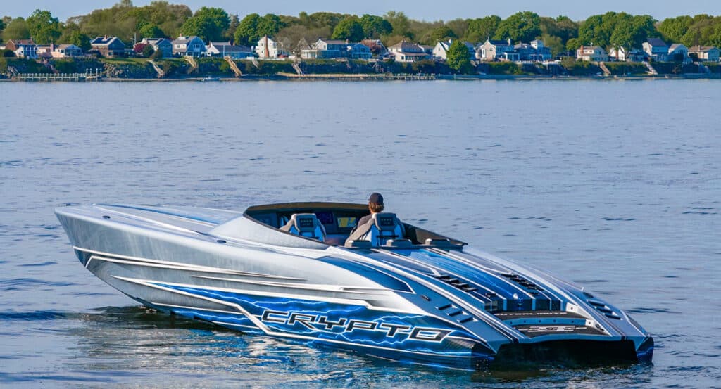 “Of course, Crypto II is one of the fastest pleasure V-bottoms in the world,” said Kleitz, then chuckled. “After all, it is an Outerlimits.”