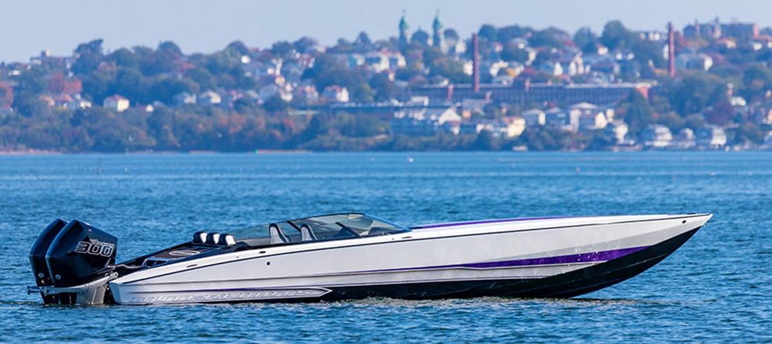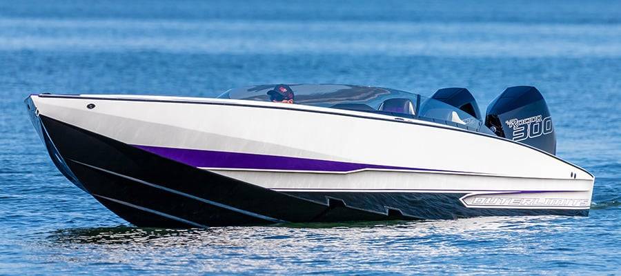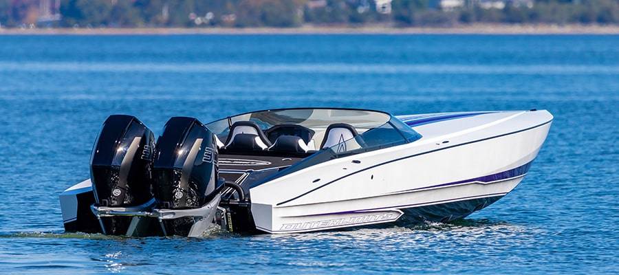 Of the nine SV 29 sportboats built by Outerlimits Offshore Powerboats, seven are powered by single sterndrive engines. But the Bristol, R.I., custom V-bottom and catamaran builder does offer the sleek 29-footer with twin Mercury Racing 300R outboard engines—a savvy move given the still-rising popularity of the Fond du Lac, Wis., company’s outboard offerings—and now the company has completed its second 29-footer with a pair of 300-hp naturally aspirated V-8 mills.