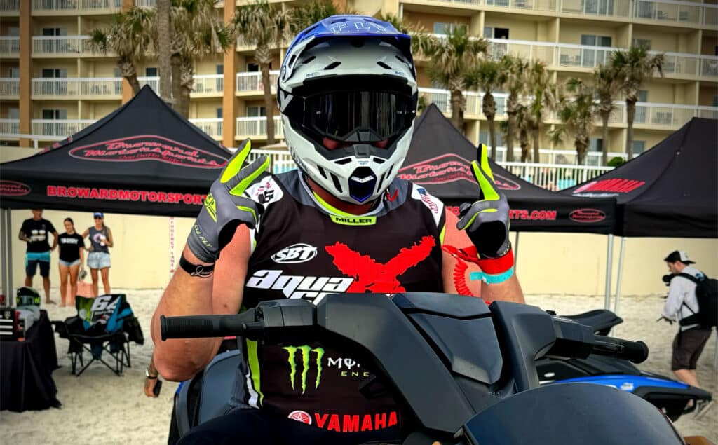 Always game to try something different, offshore racer Tyler Miller went personal watercraft racing last weekend in the waters off Daytona Beach. Photos courtesy Monster Energy/M CON and Powerboat P1