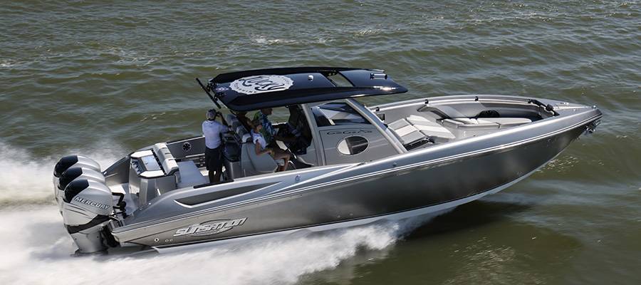 I had a choice of rides this morning—both with dear friends—for the first day of the Kuttawa Cannonball Run on Kentucky’s Lake Barkley. I could have joined Burton and Yvette Kirsten of Michigan on Jet, their full-canopy 46-foot Outerlimits Offshore Powerboats catamaran powered by Mercury Racing 1350/1100 engines. Or, had I been in the mood for fast-moving fresh air, I could have tagged with along South Florida’s Greg Harris and Yvonne Aleman on Mad Props, their DCB Performance Boats M37R Widebody catamaran equipped with Mercury Racing 450R outboards.