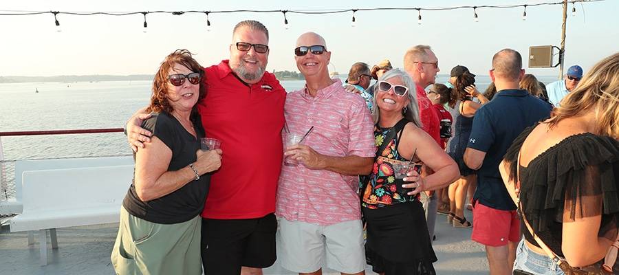 Marine insurance-and-finance man Devin Wozencraft is there with his “work wife,” Tanah Kinsey. So, too, are John and Robin Cosker of Mystic Powerboats, though they really are married.
