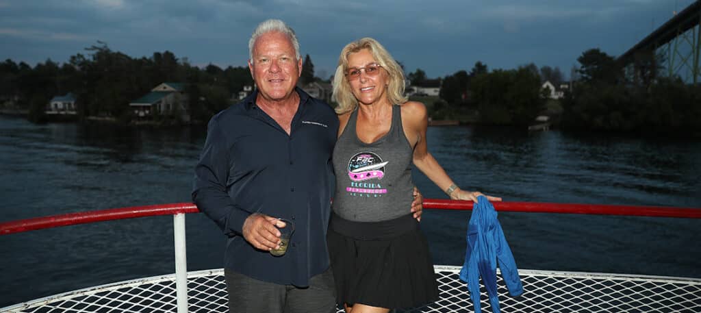 There has to be something in the clear St. Lawrence River water that brings out romance in the go-fast boating community—at least during the annual 1,000 Islands Charity Poker Run in Clayton, N.Y. Chad and Ashley Shutter of BRP Marine Custom in North Carolina got engaged three years ago at the annual event. Stu and Jackie Jones of the Florida Powerboat Club are there right now celebrating their 20th wedding anniversary during the ninth annual affair benefitting Make-A-Wish of Central New York, the Wellness Program at River Hospital and more.