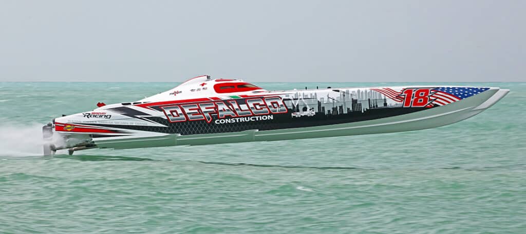 Though they finished second in the 2024 Union Internationale Motonautique Class 1 World Championship series behind Monster Energy/M CON, the Defalco team arrived in Key West, Fla., this week for the American Power Boat Association World Championships with the hot hand. Team owner/driver Mike Falco and throttleman Billy Moore claimed first place in what would be—thanks to Hurricanes Helene and Milton—the final three races of the season.