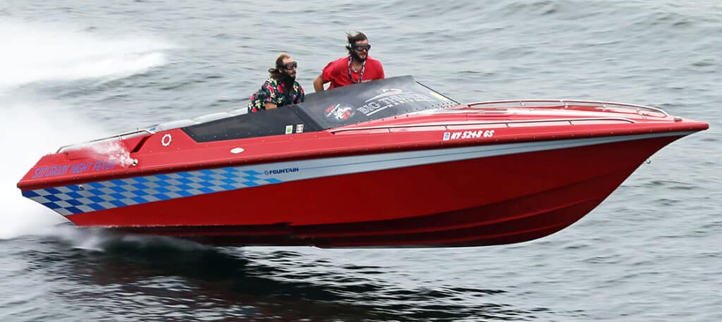 The owner of Fountain Powerboats 27 Fever V-bottom, John Rihacek and his brother, Steve, had hoped to be in the mix this week at Big Thunder Marine’s sixth annual Baja, Fountain and Donzi Fun Run. The brand-specific happening on the Lake of the Ozarks in Central Missouri is among the duo’s favorite events. But they won’t make it this year as they are prepping the 1995-model-year sportboat called Saturday Night Fever for competition in the Lake of the Ozarks Shootout in late August.