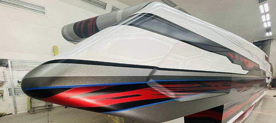 RP Elite owner/founder Ross Ramsey worked closely with powerboat-painting wizards Steve and Jack Schulte to arrive at a captivating color scheme for his Skater 368 demo, the first build in the RP Elite Skater Series.