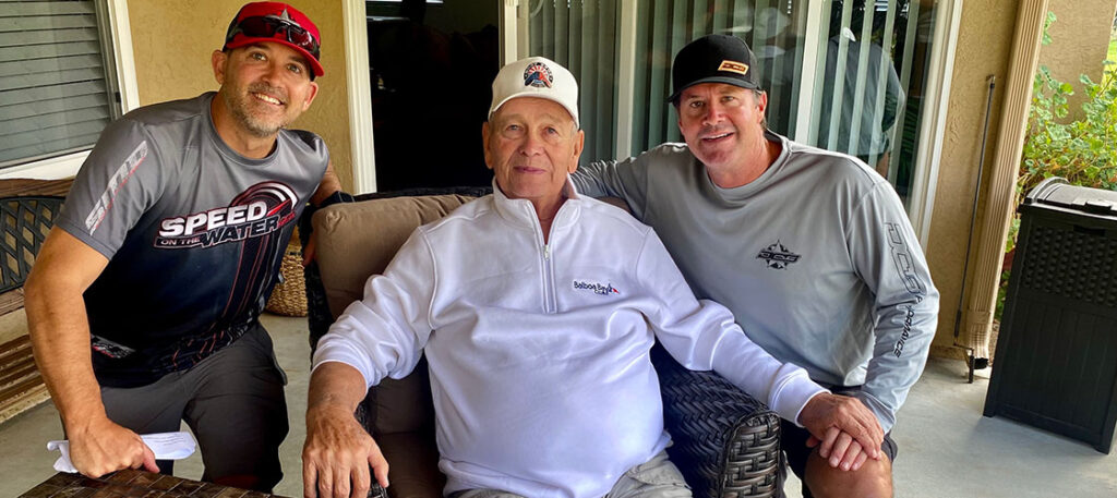 Flanked former speedonthewater.com co-publisher Jason Johnson (left) and DCB vice-president Tony Chiaramonte, the late Bob Leach founded what is now DCB Performance Marine in 1969.