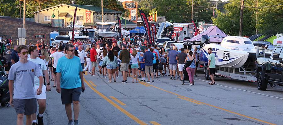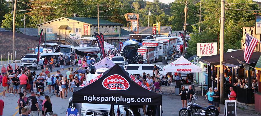 A fleet of offshore raceboats and more on the Bagnell Dam Strip during yesterday’s Lake Race Street Party set the tone for today’s action on the Lake of the Ozarks. In town to shoot the Central Missouri event for speedonthewater.com, photographer Jeff Helmkamp strolled the strip in the early evening and grabbed a few images.