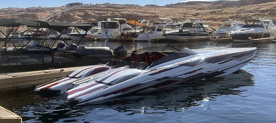 Walking the docks at Antelope Point Marina in Page, Ariz., early last Friday morning at the 13th annual Lake Powell Challenge, I spied a familiar Skater Powerboats catamaran. And yet, for a brief before-coffee moment, I couldn’t quite place it. Then the nickel dropped.