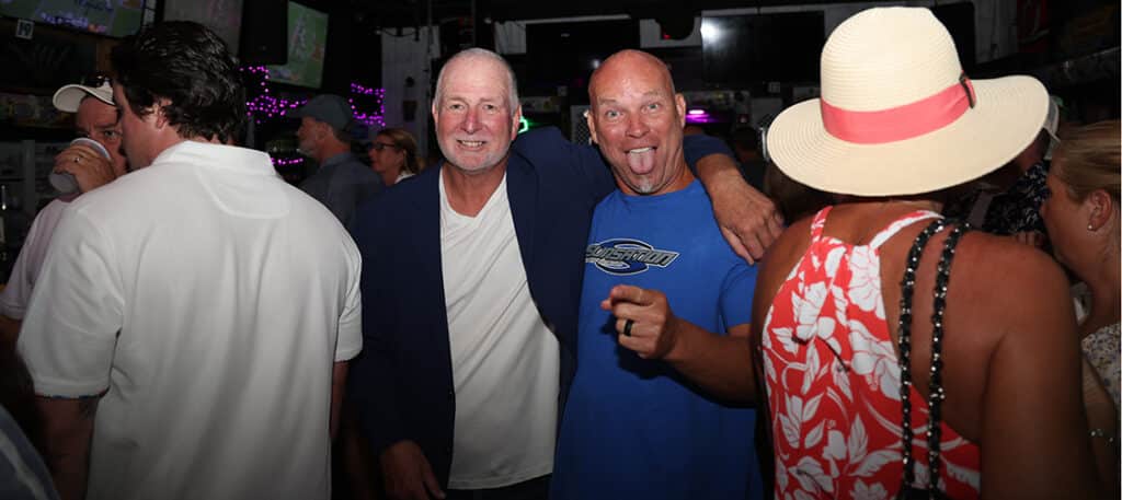 The Speed On The Water Key West Bash organizing team included longtime member Greg Harris, Fort Myers Offshore leaders Tim and Cyndee Hill and auctioneer Michael Hall of Performance Boat Center. AHEC Health Centers provided the auction stage. Simon Williams of GoGPS sponsored the audio system. Devin Wozencraft of Wozencraft Insurance and Finance sponsored the buffet at the Pickle’s Pub Sandbar host-venue.