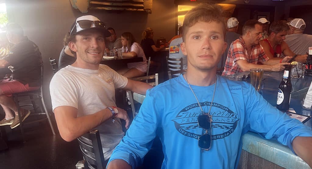 Like the other 178 Sunsation owners who registered for the third annual Sun Run, 23-year-old Mitchell Lupcke (above right) of Bay City, Mich., pretty much worships the brand. Lupcke purchased his 2000-model-year Sunsation 25 Aggressor powered by a 310-hp MerCruiser 7.4-liter engine three years ago. He looked for “a year or two” before he found the Sunsation he wanted.