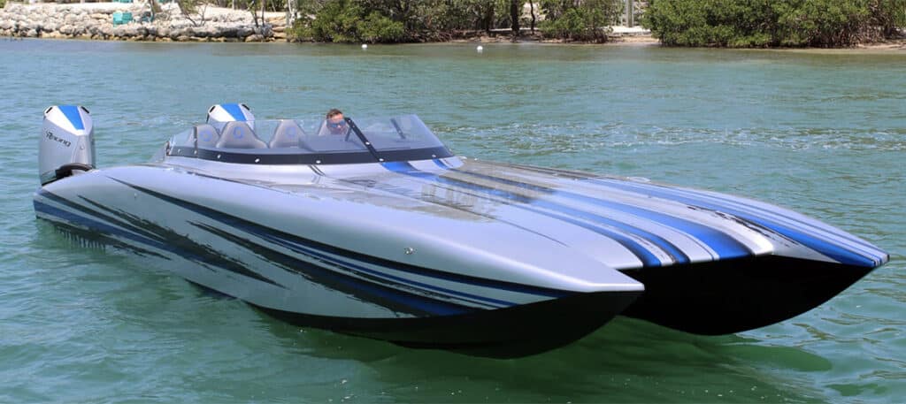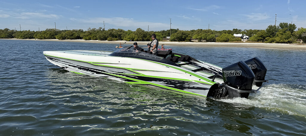 And it’s a Skater with deep freeboard, tall sponsons and a conservative 48-inch tunnel. Those elements plus stout construction combine to make 85 mph feel comfortable in the slop off Fort Myers Beach.