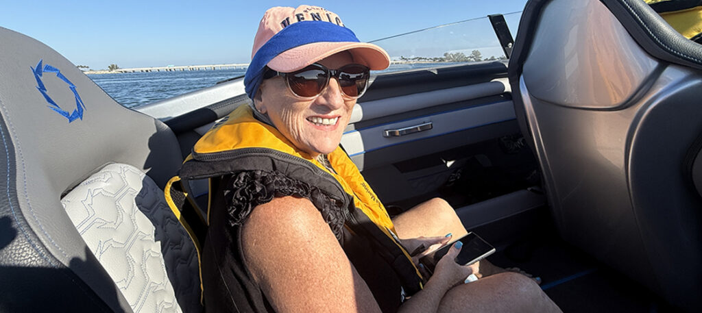 The face of pure joy—Alana Theis enjoyed her first 100-plus-mph boat ride last Saturday.