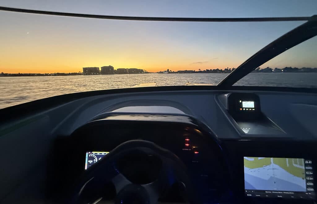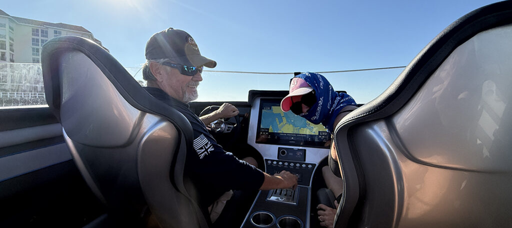 My ride for the day was the 38 Valor, and it was exceptional. Tampa Bay didn’t dish up anything larger than the odd one-footer—Julian and Ricky Maldonado described the expansive waterway as “the calmest” they’d ever seen it—but the 38-footer was a beast. It felt planted at 120 mph. The boat turned so precisely at that speed that I literally fell out of my seat (big laughs on that one, for the record) when we did it.